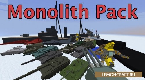 Мод Monolith является большим дополнением для мода Flan’s. Он добавляет большое количество военной техники, оружия, брони и даже военные самолеты.